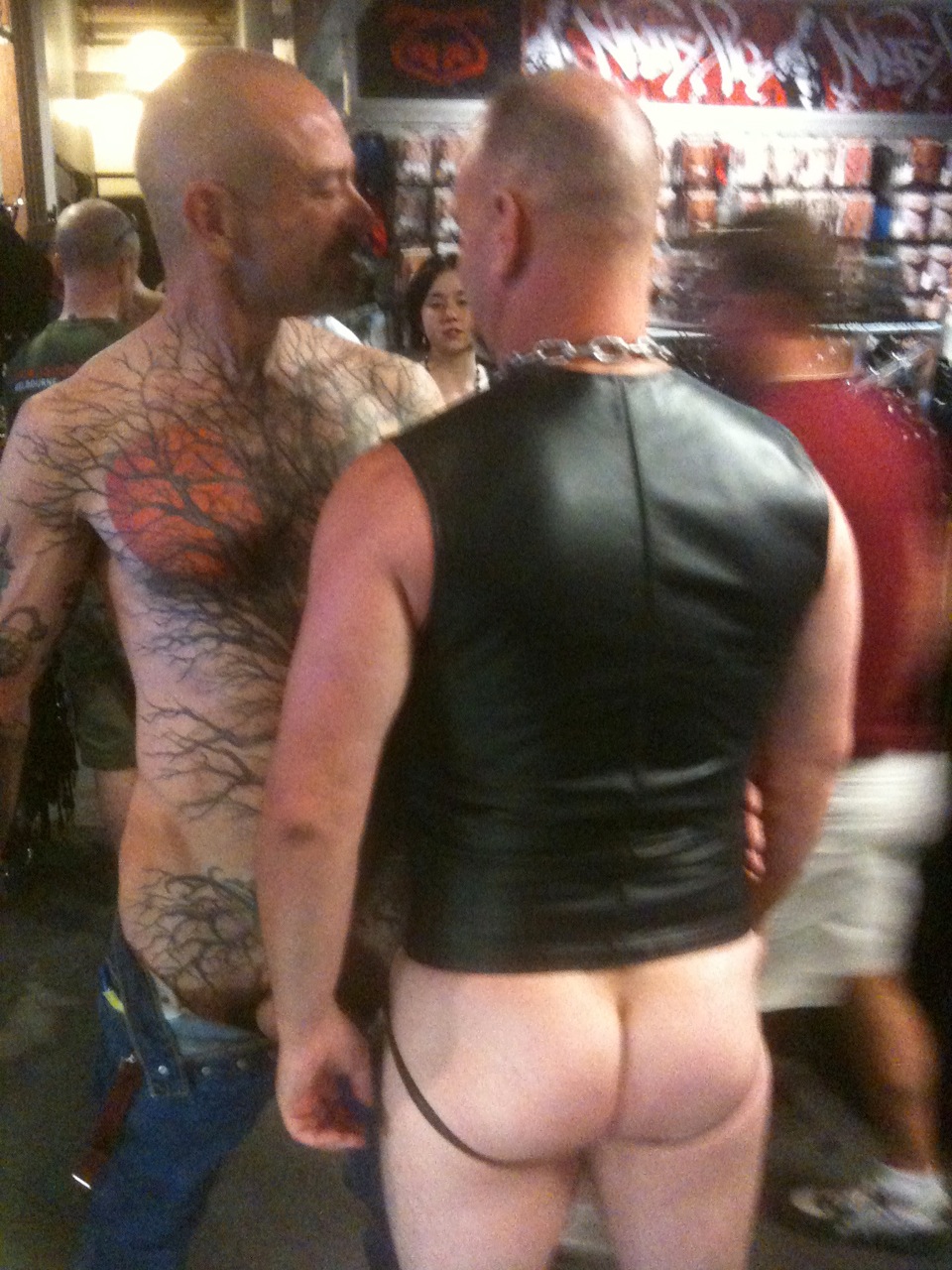 - They were in some sort of clearly-identifiable leather or fetish gear, or,