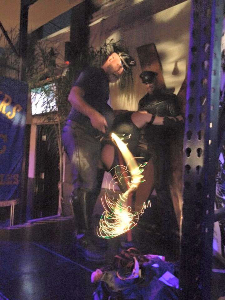 Pleasantly in use: The slave is 6'1", to give an idea of its use during the cross's break-in ceremony! The slave is a real thrasher, and there was never a moment of instability. I could never say that about the huge, heavy wooden Saint Andrew's Cross in my shed, which never gets used because it is worryingly unstable.