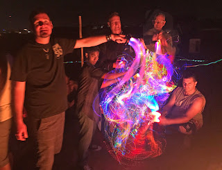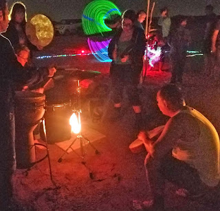 The occasion was meant to prepare many folks for the Ritual Steel event, one month later.  It was very dark out, so the flames and the lights were very vivid, with a powerful and tribal drumming backbeat. Everyone was encouraged to socialize with somebody that they did not know before, so the night passed far too quickly.