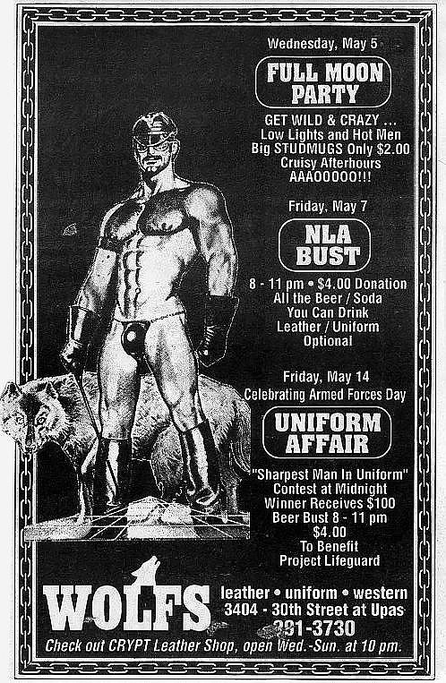 If you wanted to go any further, you had to lift your shirt and flex your abdominal muscles under the harsh overhead light. This was to prove that you had a six-pack, before they would take your money and let you go in. Another bathhouse had an entryway that was narrow - If you didn't fit through, you weren't welcome. This was balanced by Bears bathhouses elsewhere.