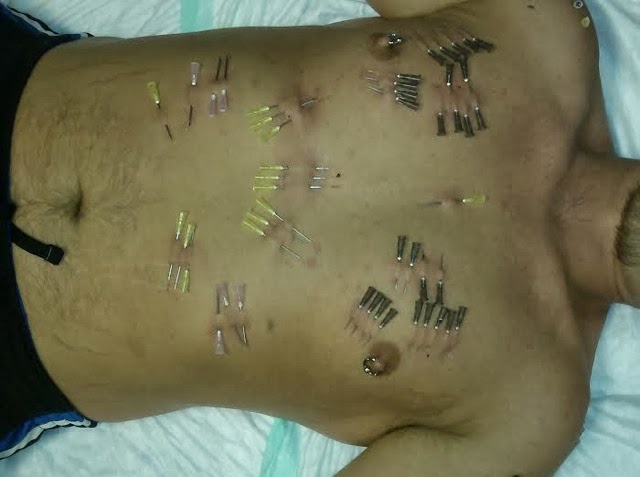 Along with rope, bondage, impact & fisting another of my favorite fetishes is needles. Yes needles, sharp shiny little surgical steel objects that can quickly create a endorphin rush like no other instrument. I have been fascinated with this play since 2005. I have about 9 years of experience as both a top & bottom in the erotic art of needle play.